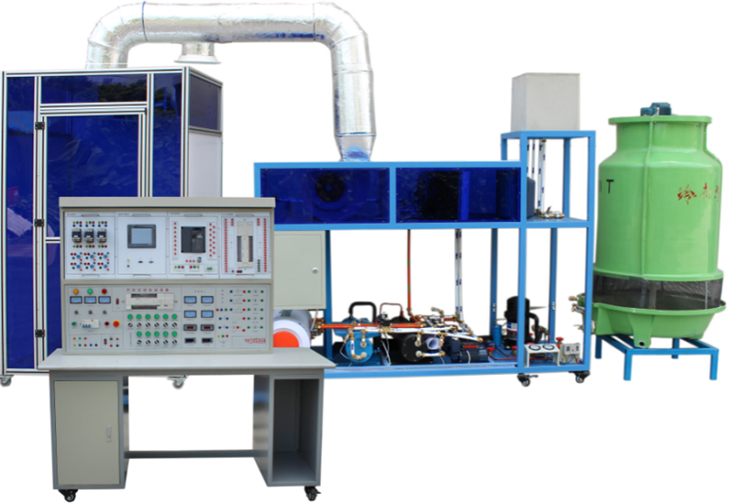 主要由冷源系統、熱源系統、空氣處理及配送系統及控制與顯示系統等組成。可滿足學校既能開出驗證性實驗,也可以開設故障設置性實驗滿足畢業設計、教師科研、創新實驗室所需,能實現一機多用。